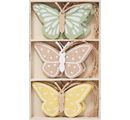 Motýlci o rozměrech přibližně 9 x 5,5 cm a tloušťce 2 mm jsou vyrobeni z překližky a dodávají se s pevnou jutovou šňůrkou - jsou ideální k připevnění na dárky, kytice nebo jako dekorace ve vaší domácnosti. Celková výška včetně jutové šňůrky je přibližně 13 cm.