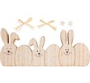 Naše sada obsahuje pět kusů vyrobených z rafie, překližky a MDF dřeva s dýhovanou přední stranou, které si můžete namalovat, nalepit nebo vyzdobit podle libosti. S šířkou 1,7 cm, výškou 10 cm a délkou 23 cm je tato jednostranně zdobená paráda ideální pro zdobení parapetů, poliček nebo stolů. Dvě rafiové mašle a dvě květiny k nalepení dodávají nakresleným obličejům zajíčků tu jistotu.