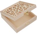 Dřevěná krabička se vyznačuje krásným designem s laserem vyřezaným ornamentem květiny ve víku. Díky svému extravagantnímu designu je ideální pro hravé či orientální dekorace nebo jako velmi speciální dárkové balení.