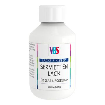 Tento "lesklý" lak na ubrousky VBS lze použít k realizaci kreativních projektů ubrouskovou technikou. Jedná se o ubrouskové lepidlo a potahový lak v jednom výrobku. Lak je šetrný k životnímu prostředí a je na vodní bázi. Těsně přiléhající šroubovací uzávěr zabraňuje jeho vysychání.