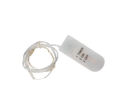 LED světelný řetěz s 10 teplými bílými LED žárovkami ve tvaru kapky je vybaven časovačem. Délka světelných řetězů s drátěným kabelem stříbrné barvy: 1,3 m.