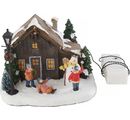 Roztomilý miniaturní domeček VBS ve sněhu včetně LED osvětlení pro působivé dekorace v miniaturních vánočních světech. Detailně propracovaná miniatura z polyresinu o velikosti cca 15,5 x 14 x 11,5 cm. Dřevěně vyhlížející domek lze osvětlit a je obklopen zasněženými jedličkami, sněhulákem, hrajícími si dětmi a osvětlenou lucernou. Vypínač teplého bílého osvětlení je umístěn na přihrádce na baterie.