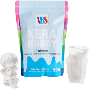 VBS odlévací prášek „KeraHobby“ je jemný, čistě bílý odlévací prášek na bázi sádry, speciálně vyvinutý pro kreativní odlévací projekty. Vyniká mimořádnou snadností použití, obzvláště jasnou bílou barvou a detailními, hladkými výsledky odlévání.