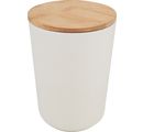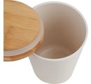 Elegantní dekorativní dóza VBS s víkem, kulatá, vysoká cca 14 cm. Úložná plechovka má v horní části průměr cca 10,3 cm a ve spodní části cca 8,0 cm. Víčko má plastový kroužek, aby bylo možné úložnou nádobu vzduchotěsně uzavřít. Materiál se skládá z 65 % bambusového vlákna, 15 % kukuřičného prášku a 20 % melaminu. Melamin je nezbytný k tomu, aby bambusová dóza na skladování držela pohromadě a byla pevná a opakovaně použitelná.