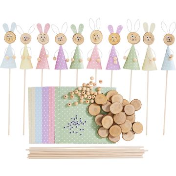 Nyní se rozhodněte, zda chcete, aby měl váš králíček papírové nebo drátěné uši. V případě drátěných uší ustřihněte dva 6 cm dlouhé kousky drátu a mírně je uprostřed ohněte, abyste vytvořili horní část ucha. Poté oba konce drátku stočte asi o 2 cm k sobě, aby se tvar zafixoval. Uši přilepte k zadní části hlavy horkým lepidlem.