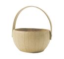 Malý velikonoční košíček z papírmašé o průměru cca 9 cm. Rukojeť je pohyblivá a vysoká asi 6,5 cm. Košík včetně ucha je vysoký 11,5 cm. Skvěle se hodí na malá velikonoční překvapení.