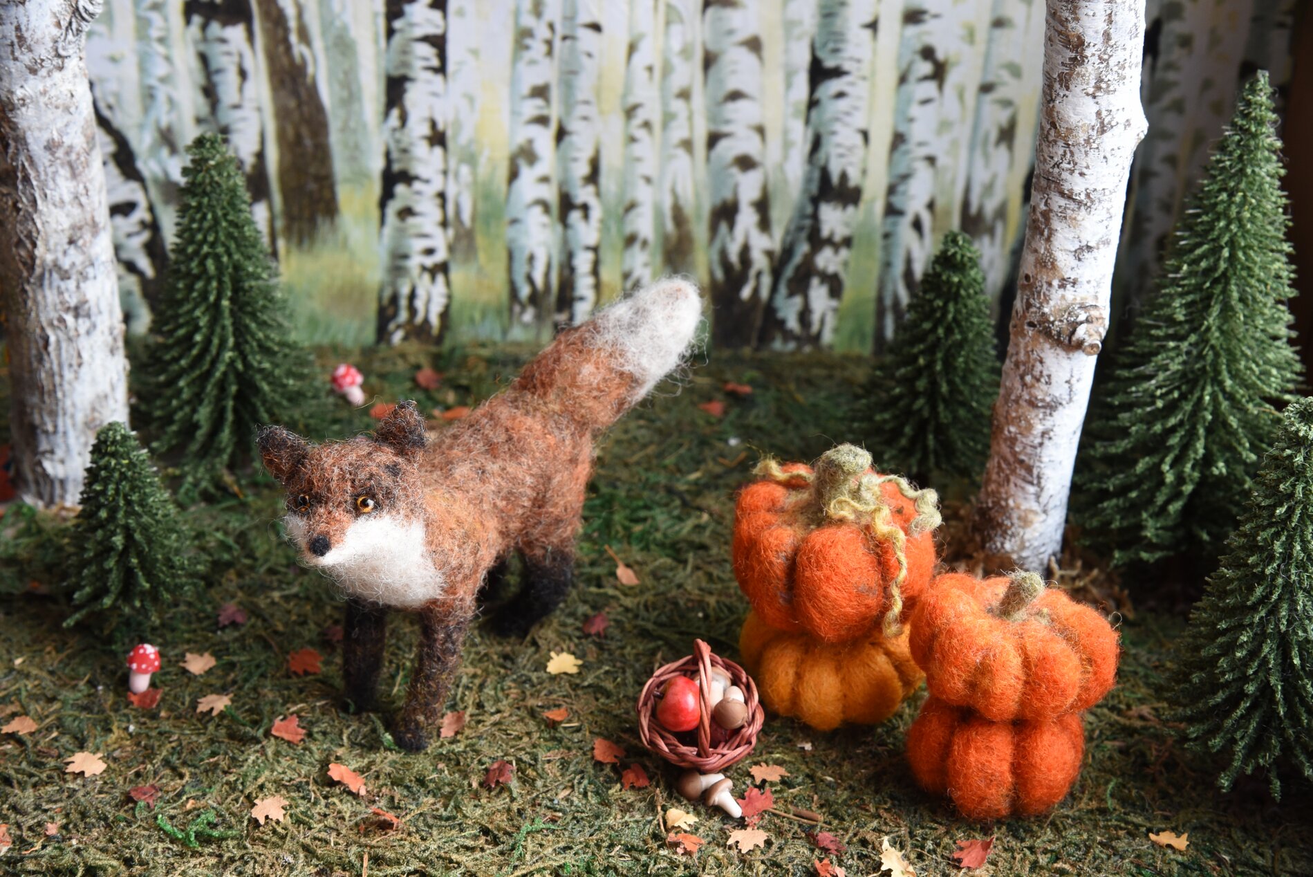 Nyní drátěné prameny kousek po kousku omotejte vlnou a pomocí plstící jehly je uplstěte do pevného těla. Postupně lišku vytvarujte pomocí bílé a hnědé vlny.