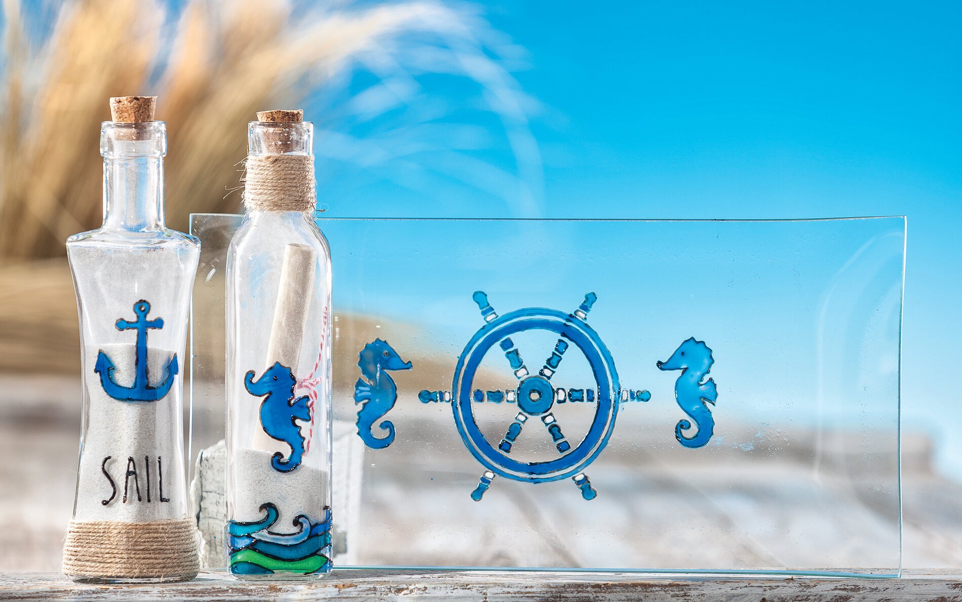 Malování za skloNatřete spodní stranu skleněných misek. Šablona se umístí pod sklo v zrcadlovém obraze. Barevný vzor v hotovém předmětu elegantně prosvítá skrz sklo, nenatřený skleněný povrch lze čistit jako obvykle a lze jej také plnit potravinami.