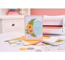 Použití děrovací šablony Sizzix Thinlits je hračka. Jednoduše položte vybraný kreativní papír na šablonu a prostrčte jej výsekovým strojem. Vykrajované květiny a trávy pak můžete použít podle libosti a dotvořit tak své projekty.