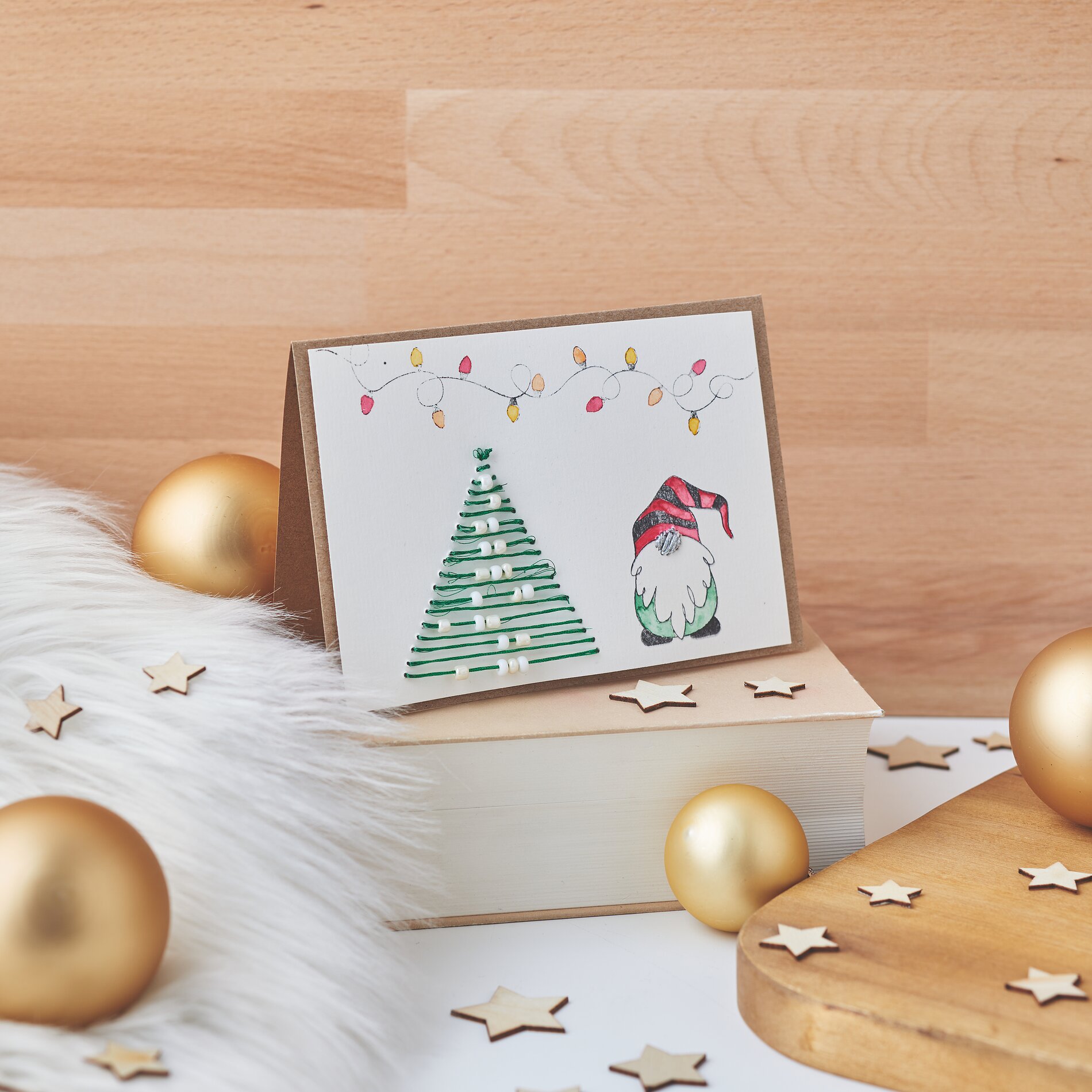 Nyní přichází na řadu ústřední bod vašeho přání - výšivka! Vezměte si vyšívací nit (známou také jako vyšívací nit) a jehlu. Vyšijte obrysy motivů. Pro další akcenty můžete pracovat s třpytivými rokajlovými korálky, které navléknete na nit.
