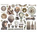 Objevte kreativní svět Vystřihovací motivy "Voyages Fantastiques"! Tyto umělecké laserem vyřezávané motivy s nostalgickým vzhledem vás vezmou na fantastickou cestu plnou inspirace a možností. Třicet sedm detailně propracovaných dílků, včetně lidí, horkovzdušných balónů, aut, ozubených kol a nápisů, je dokonale sladěných a nabízí vám nespočet možností designu.