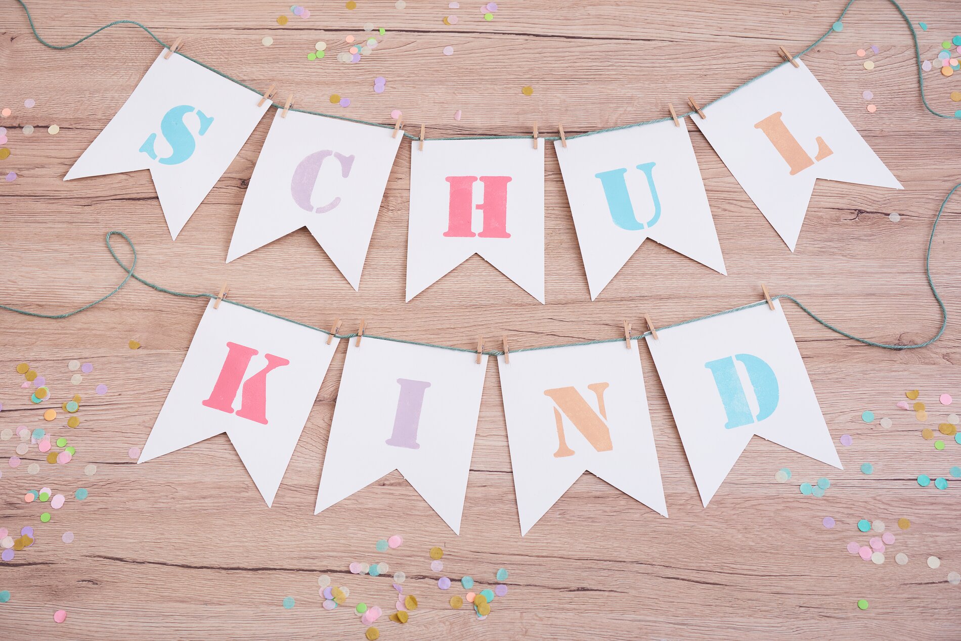 Ustřihněte požadovanou délku stuhy a připevněte k ní pentle pomocí kolíčků na prádlo.