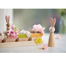 Nádherný podnos VBS s 5 dřevěnými květináči. Tác včetně květináčů měří přibližně 35 cm na délku x 7,5 cm na šířku x 6,2 cm na výšku. Vnitřní plocha tácu měří cca 33,2 cm x 5,8 cm, výška cca 1,7 cm. Pět květináčů má rozměry cca 6,5 cm x 6,5 cm a směrem dolů se kuželovitě rozbíhají, takže jejich půdorysná plocha je cca 4 cm x 4 cm. Vnitřní rozměry v horní části jsou cca 5 cm x 5 cm.
