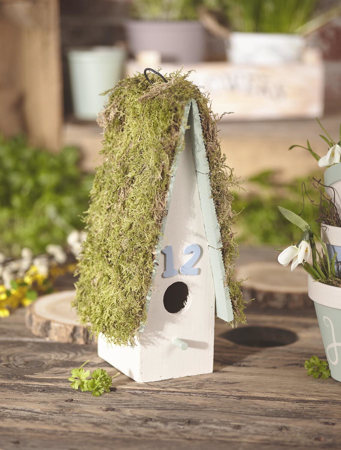 Listovým mechem pokryje se mechem. Toto lepidlo má tu výhodu, že po zaschnutí obzvlášť pevně fixuje a chrání váš výtvor před vlhkostí lépe než běžná řemeslná lepidla.